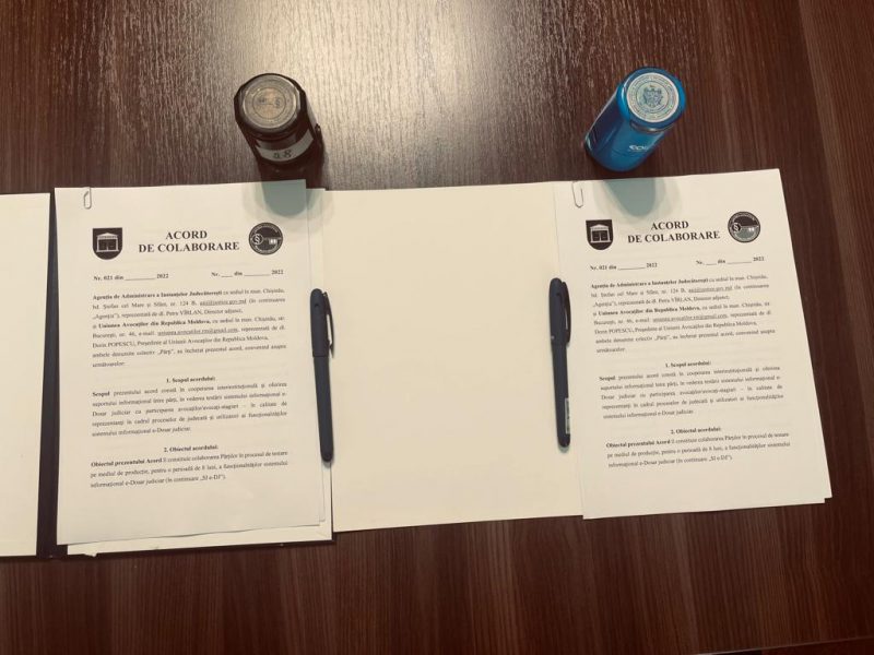 În urma unui șir de negocieri, la data de 22 august 2022, în incinta sediului Uniunii Avocaților a fost semnat un acord de colaborare bilateral între Uniune și Agenție, în scopul unei cooperări și colaborări eficiente între entități pe segmentul implementării și pilotării Sistemului informațional e-Dosar Judiciar (SI e-DJ).