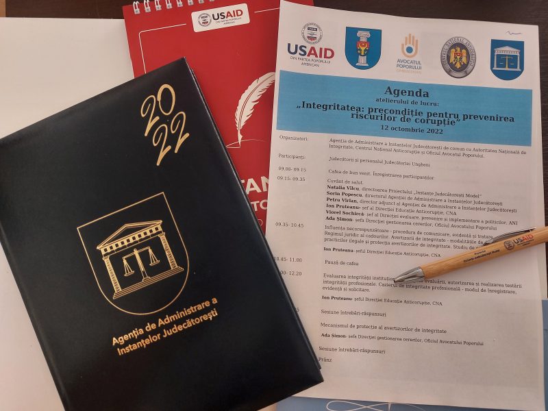 Cel de-al II-lea atelier de lucru cu genericul „Integritatea: precondiție pentru prevenirea riscurilor de corupție” s-a desfășurat la 12 octombrie 2022, în cadrul Judecătoriei Ungheni, cu scopul promovării integrității în rândurile funcționarilor publici.