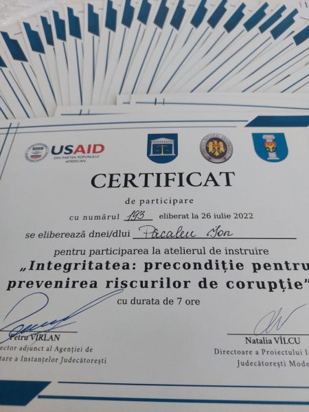 „Integritatea: precondiție pentru prevenirea riscurilor de corupție”- genericul atelierului de instruire organizat la Bălți, la data de 26 iulie, unde peste 40 de judecători și angajați ai judecătoriei au beneficiat de un curs în domeniul integrității instituționale și anticorupției.